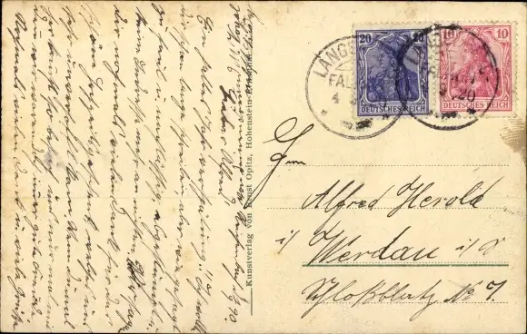 Zustand, siehe Scan, gelaufen, 1920 - ca 14 cm X 9 cm