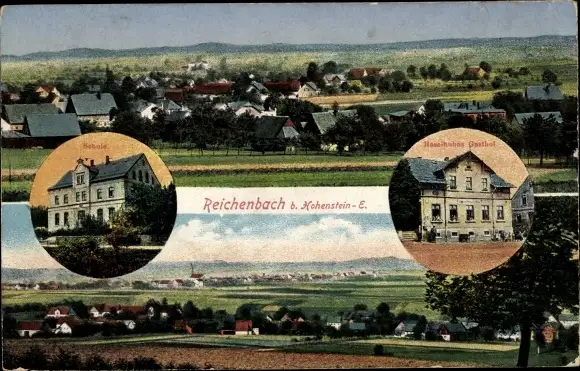 Ak Reichenbach Callenberg in Sachsen, Gasthof, Schule, Ortsansichten