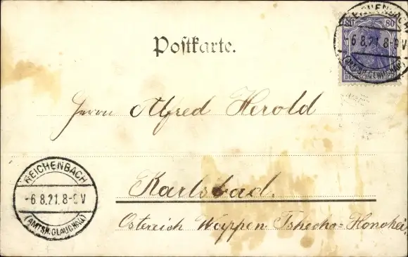 Zustand, siehe Scan, gelaufen, 1921 - ca 14 cm X 9 cm
