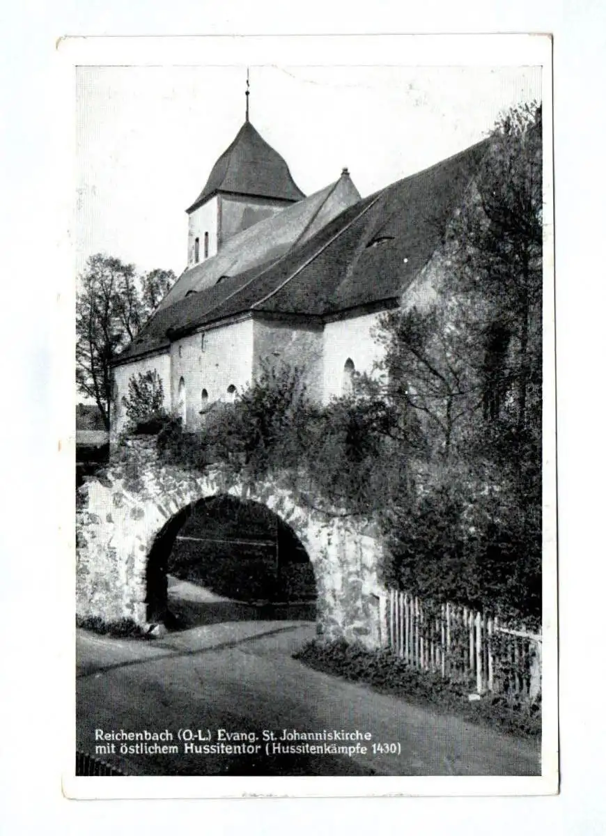 Ak Reichenbach Evangelische Kirche St. Johanniskirche mit östlichen Hussitentor