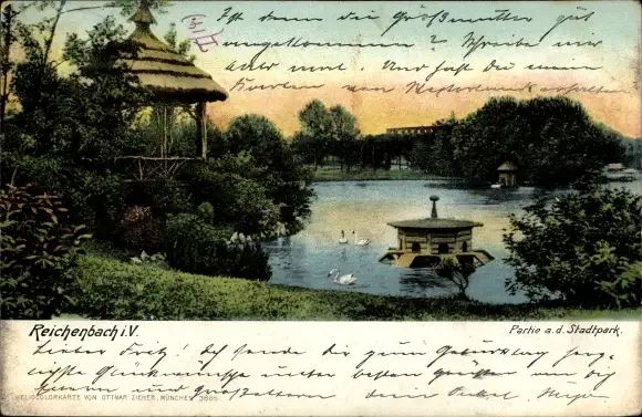 Ak Reichenbach im Vogtland, Partie am Stadtpark, Schwäne, Teich