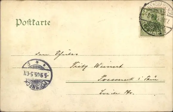 Zustand, siehe Scan, gelaufen, 1905 - ca 14 cm X 9 cm