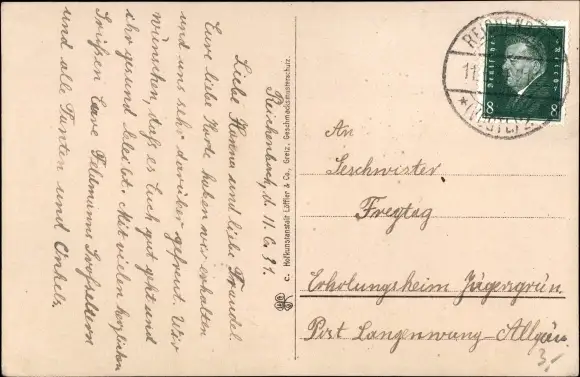 Zustand, siehe Scan, gelaufen, 1931 - ca 14 cm X 9 cm