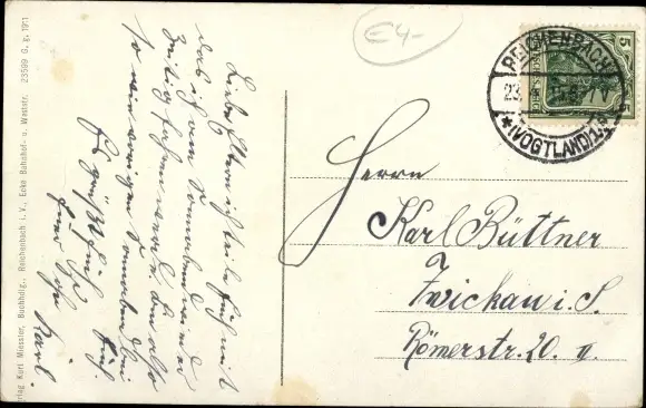 gelaufen 1915, fleckig, Ecken bestoßen, sonst guter Zustand