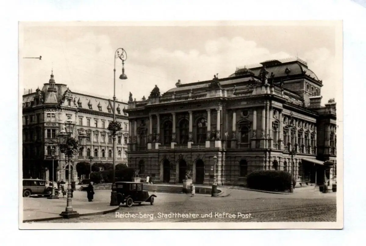 Ak Reichenberg Stadttheater und Kaffee Post 1929 Liberec Tschechien