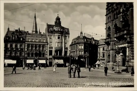 Ak Reichenberg in Böhmen Liberec Tschechien, Altstädterplatz mit Gebäuden, Menschen auf dem Pl...