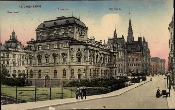 Ak Reichenberg in Böhmen Liberec Tschechien, Postamt, Rathaus, Theater