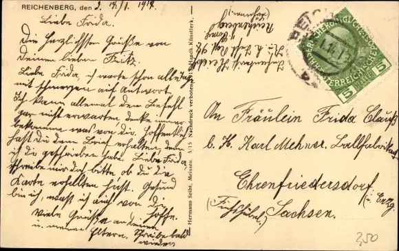 Zustand, siehe Scan, gelaufen, 1914 - ca 14 cm X 9 cm