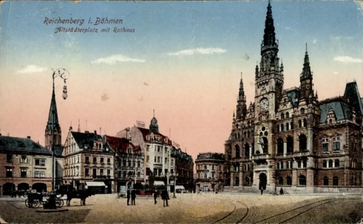 Ak Reichenberg in Böhmen Liberec Tschechien, Reichenberg i. Böhmen, Altstädterplatz, Rathaus,
