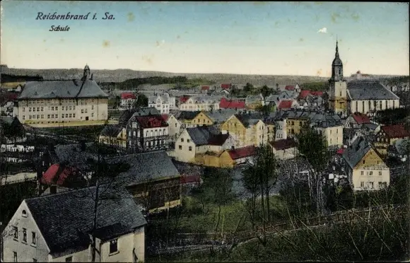 Ak Reichenbrand Chemnitz in Sachsen, Panorama mit Schule, Kirchturm