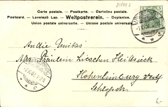 Zustand, siehe Scan, gelaufen, 1902 - ca 14 cm X 9 cm