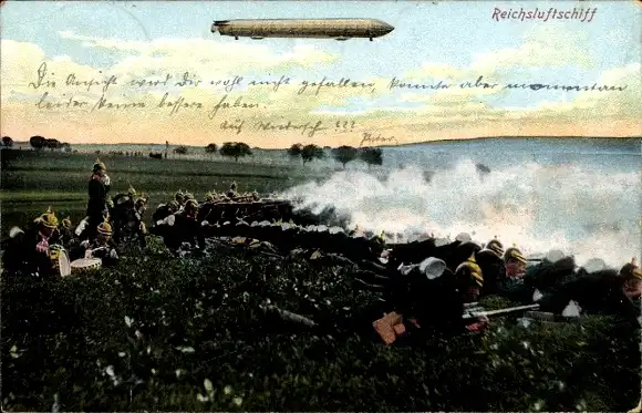 Ak Reichsluftschiff, Deutsche Soldaten in Uniformen, Manöver