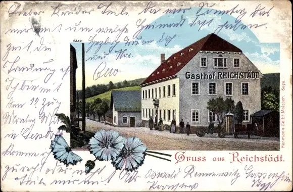 Ak Reichstädt Dippoldiswalde im Erzgebirge, Partie am Gasthof