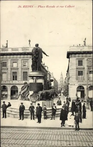 Ak Reims-Marne, Place Royale und Rue Colbert