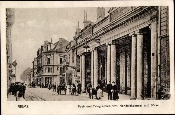 Ak Reims Marne, Post und Telegraphenamt, Handelskammer, Börse