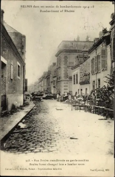 Ak Reims Marne, Rue Brulee transformee en garde-meubles