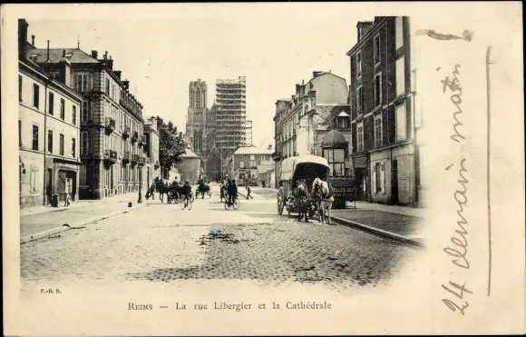 Ak Reims-Marne, Rue Libergier, Kathedrale
