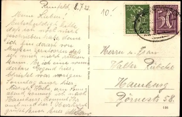 Zustand, siehe Scan, gelaufen, 1922 - ca 9 cm X 14 cm