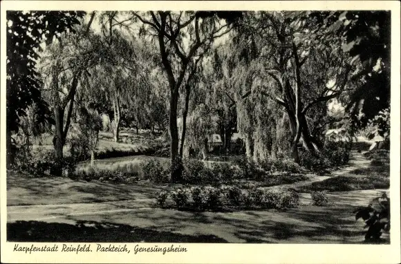 Ak Reinfeld in Holstein, Genesungsheim, Partie am Parkteich