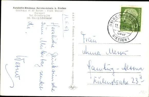 Zustand, siehe Scan, gelaufen, 1957- Inh.: Georg Schmiedel - ca 14 cm X 9 cm