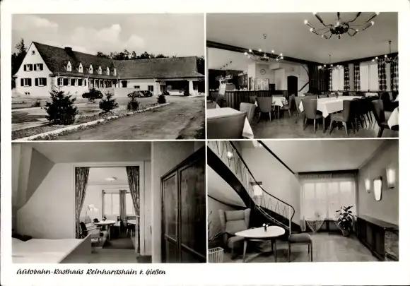 Ak Reinhardshain Grünberg in Hessen, Autobahnrasthaus, Aussen- und Innenansicht