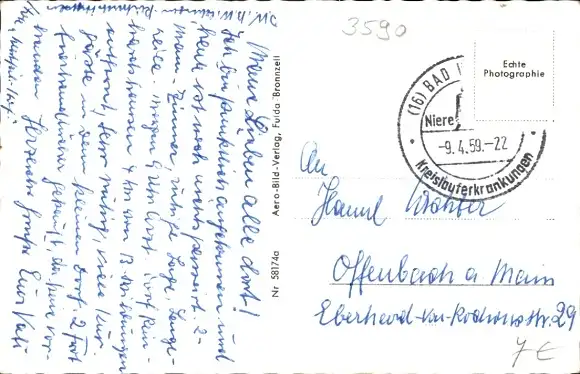 Zustand, siehe Scan, gelaufen, 1959 - ca 14 cm X 9 cm