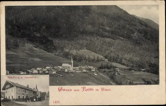 Ak Reith in Tirol, Panorama, Handlung und Gasthaus