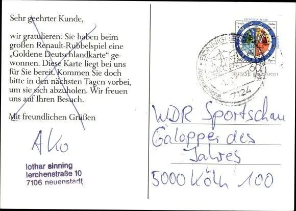 Zustand, siehe Scan, gelaufen - ca 15 cm X 11 cm
