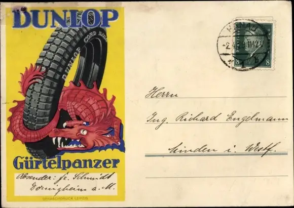 Ak Reklame Dunlop Gürtelpanzer, Reifen, Drache