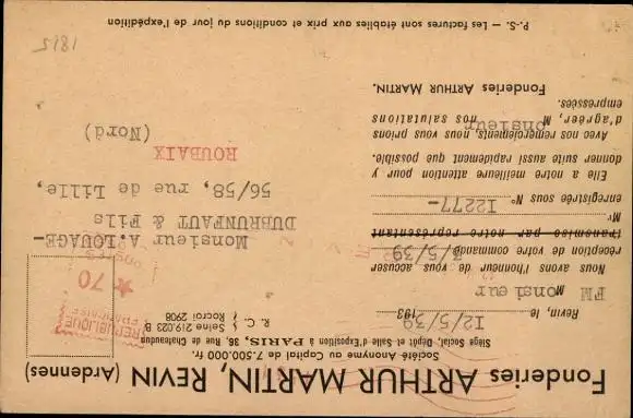 Ak Reklame, Fonderies Arthur Martin, Riven, Spidex 314