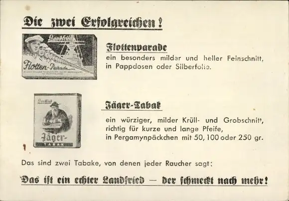 Ak Reklame Landfried Tabak, Flottenparade, Jäger-Tabak