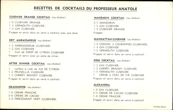 Ak Reklame, Le Mandarin, herzlicher Aperitif, Kellner, Rezepte Cocktail