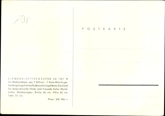 Ak Reklame, Siemens Rundfunkgeräte, Radio Spitzensuper SB 780 W