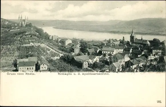Ak Remagen am Rhein, Ortsansicht, Apollinariskirche
