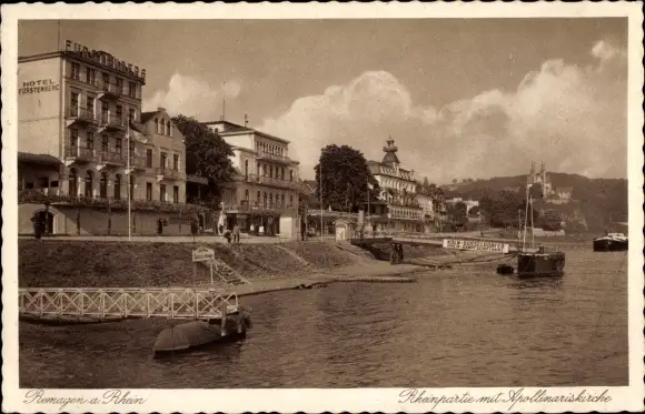 Ak Remagen am Rhein, Rheinpartie mit Apollinariskirche