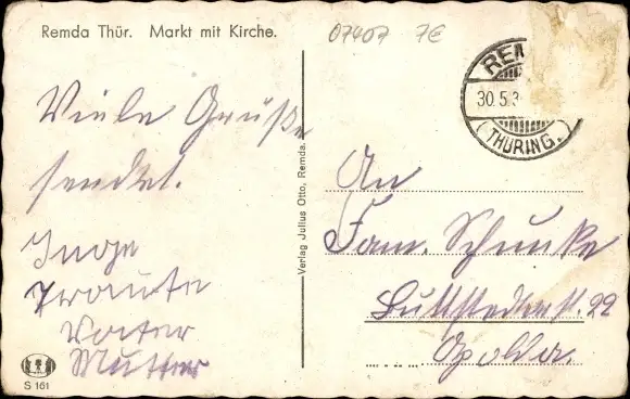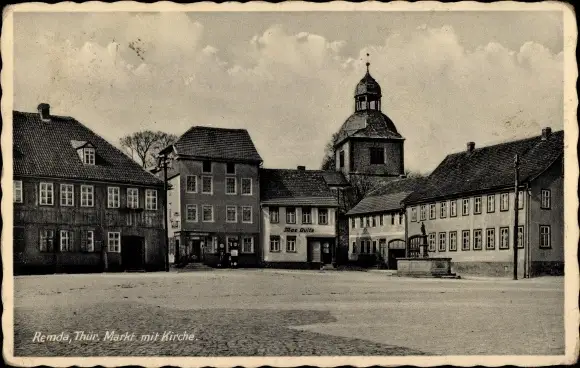 Ak Remda Rudolstadt in Thüringen, Markt mit Kirche