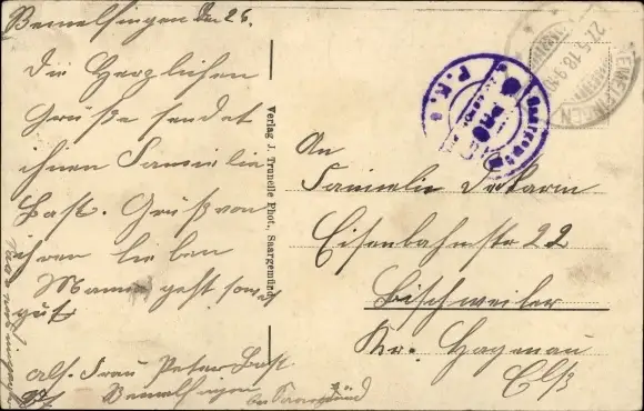 Zustand, siehe Scan, gelaufen, 1918 - ca 14 cm X 9 cm