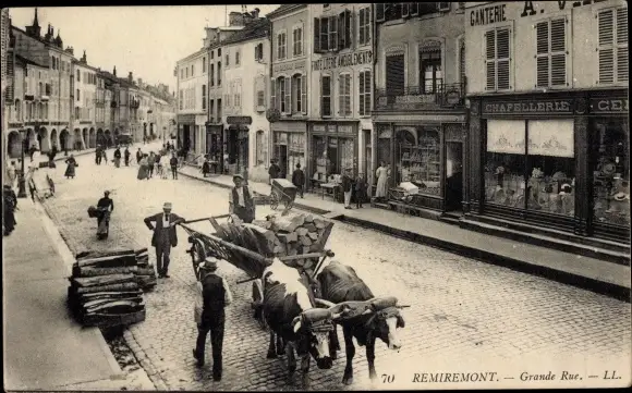 Ak Remiremont Lothringen Vosges, Grande Rue, Chapellerie, Rinderkarren