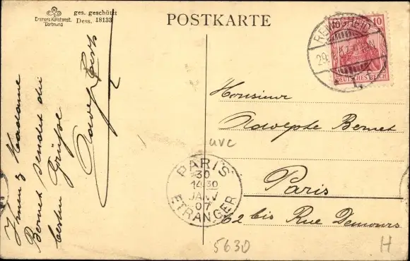 Zustand, siehe Scan, gelaufen, 1907 - ca 14 cm X 9 cm