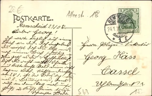 Zustand, siehe Scan, gelaufen, 1908 - ca 14 cm X 9 cm
