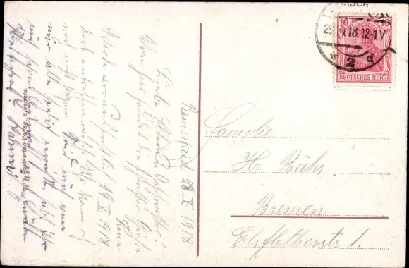Zustand, siehe Scan, gelaufen, 1918 - ca 14 cm X 9 cm