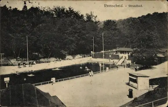 Ansichtskarte, Postkarte, Badeanstalt, Schwimmbad, Freibad, Strandbad, Volksbad