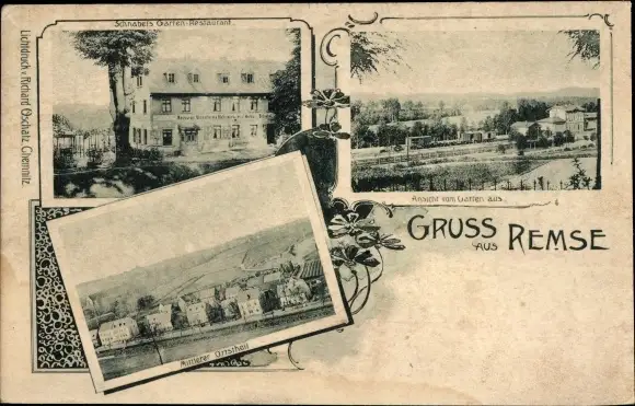 Ak Remse an der Mulde, Schnabels Garten-Restaurant, Panorama, Mittlerer Ortsteil