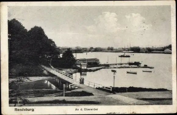Ak Rendsburg in Schleswig Holstein, An d. Obereider, Schiff, Boote