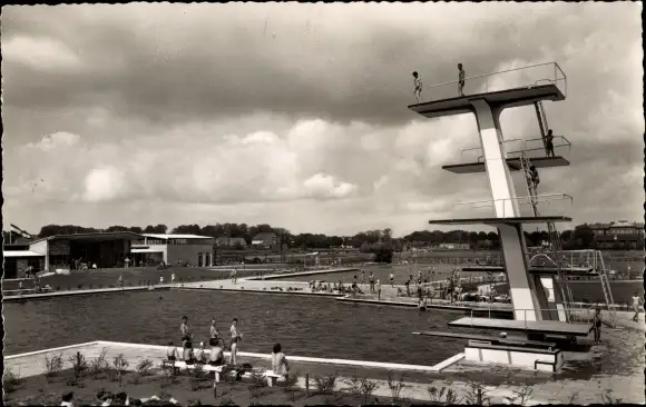 Ak Rendsburg in Schleswig Holstein, Badeanstalt, Sprungturm, Badegäste