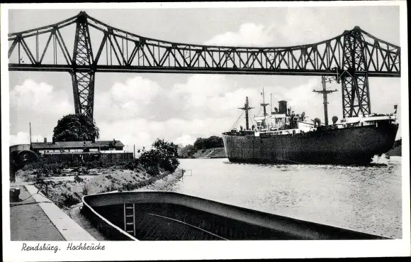 Ak Rendsburg in Schleswig Holstein, Blick auf die Hochbrücke, Schiffe