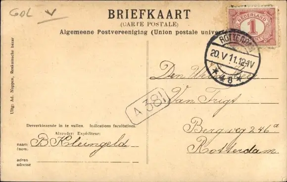Zustand, siehe Scan, gelaufen, 1911 - ca 14 cm X 9 cm