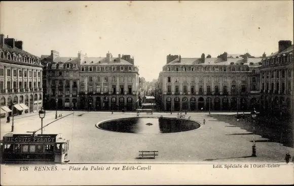 Ak Rennes Ille et Vilaine, Place du palais et rue Edith Cavell