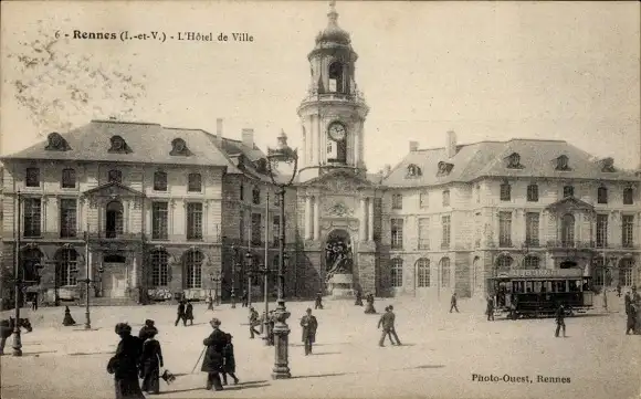 Ak Rennes Ille et Vilaine, Rathaus, Straßenbahn