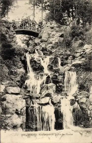 Ak Rennes Ille et Vilaine, Wasserfall Jardin des Plantes